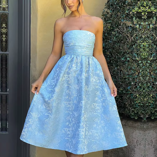 Floral Satin Sleeveless Tube Neck Princess Midi Dress (Clearance)