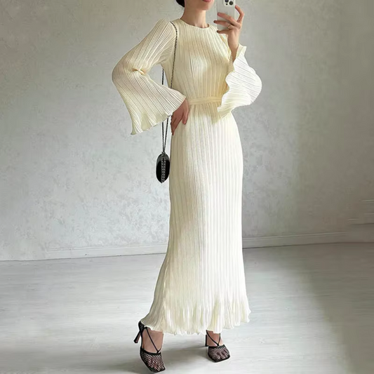 Pleated Modest Flare Sleeves Waist Tie Evening Dress (Clearance)