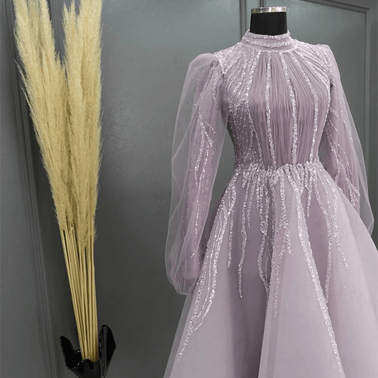 Dubai Modest Elegant Abiye Elbise Sparkly Sequin Evening Dress (Clearance)