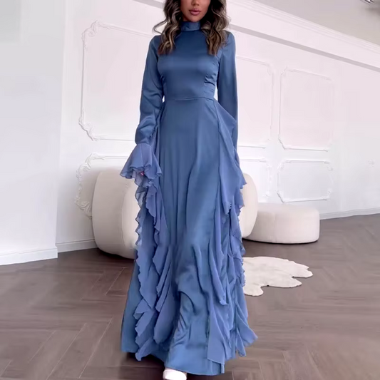 Navy Blue Ruffle Modest Evening Dress (Clearance)