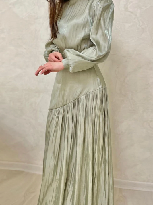 Elegant Pleated Batwing Sleeve Maxi Dress