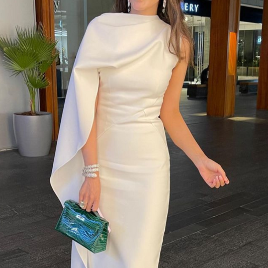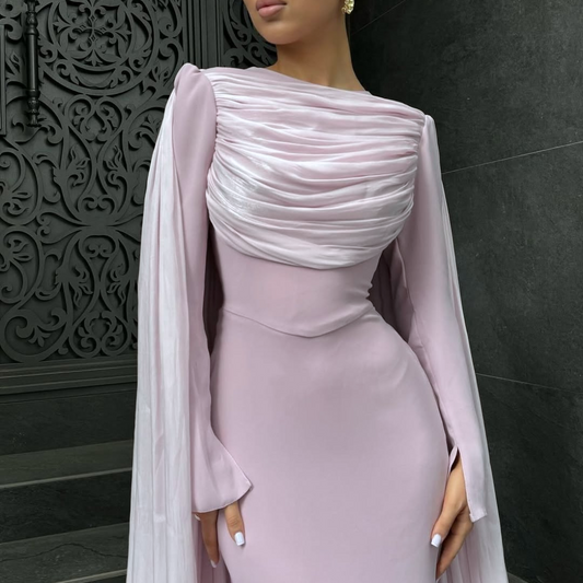 Light Purple Modest Chiffon Pleated Cape Evening Dress