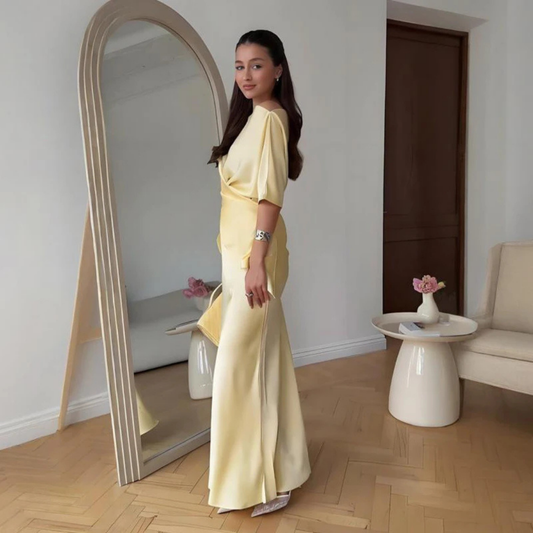 Elegant Yellow Two Piece Mermaid Wrap Dress Set