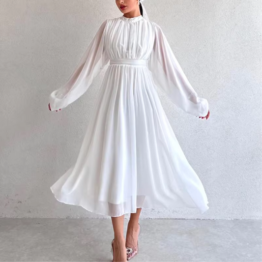 Modest Pleated Chiffon Flare Sleeves Midi Dress