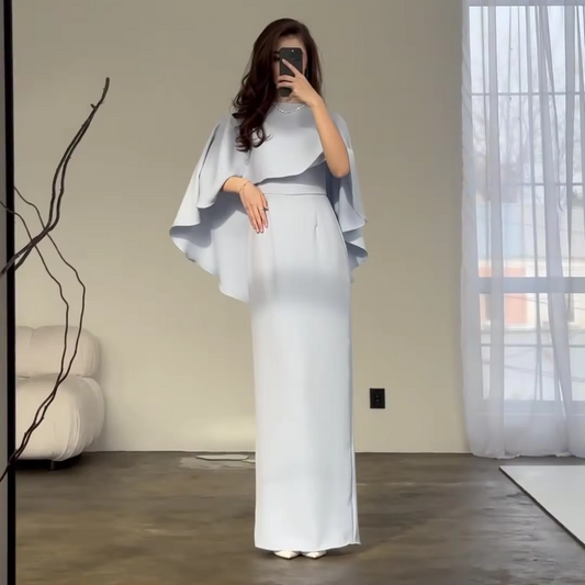 Pale Blue Modest Cape Sleeves Slim Long Dress